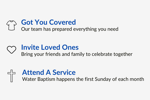 BaWe believe that water baptism is a public declaration of three important things: you are a follower of Jesus Christ, you are beginning a changed life in Christ, and you are part of a new family.